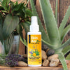 Aloe Vera Juice, Vitamin E, Calendula Tincture, Lavender Oil and Flower Essences: Rock Rose, Star of Bethlehem, Impatiens, Clematis and Cherry Plum.